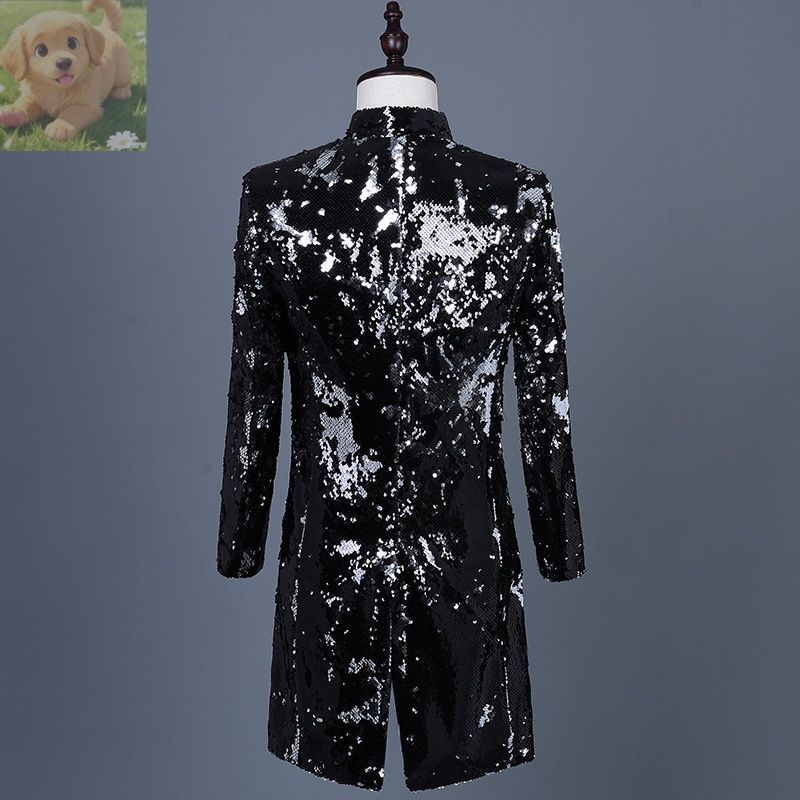 メンズ スーツ ロングジャケット グラデーション シルバー ゴールド宮廷S M L-6 XL演歌 歌手衣装DJ舞台衣装コスプレ