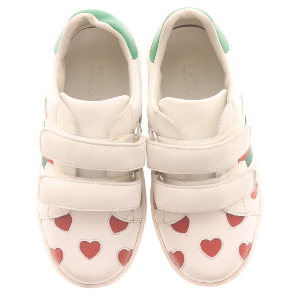グッチ スニーカー シューズ 682221 靴 ハート マジックテープ キッズ 26 16 cm相当 ホワイト レッド グリーン