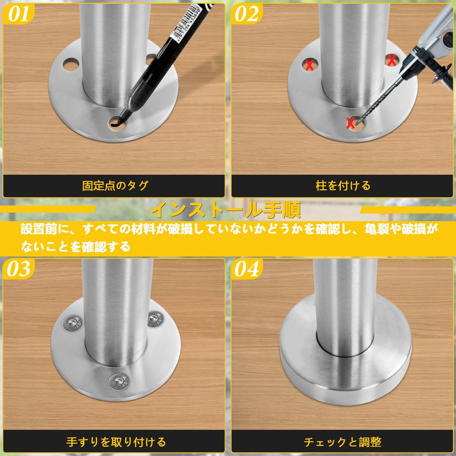 304ステンレス鋼 階段手すり DIY 入口角度調整 屋内 屋外使用 取り付け簡単 滑らかなつや消し表面 高さ90 cm 直径42 mm 厚さ1.2 長さ120 シルバー