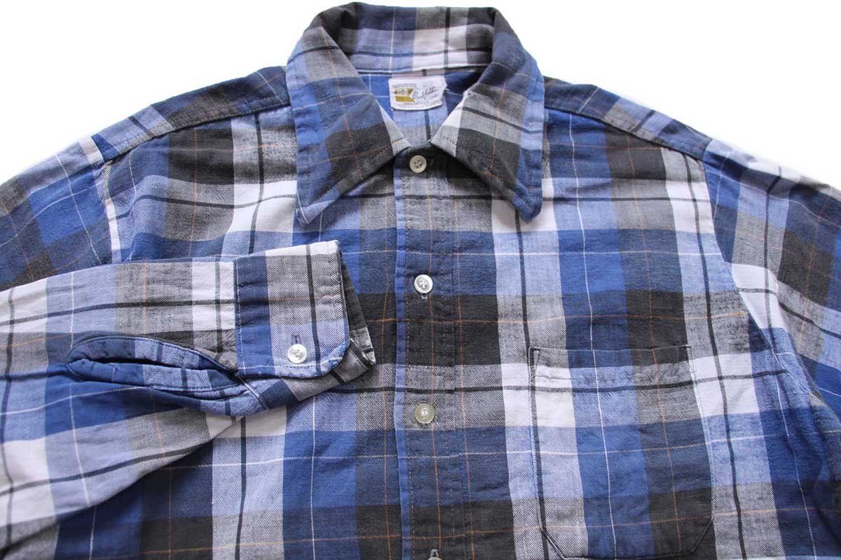 70 s Berkfield チェック コットン ライトネルシャツ L ビンテージ マドラス
