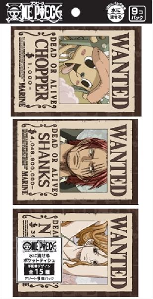 国民的アニメ、ワンピースの水に流せるポケットティシュです。大人から子供まで幅広い人気を誇るキャラクターです。