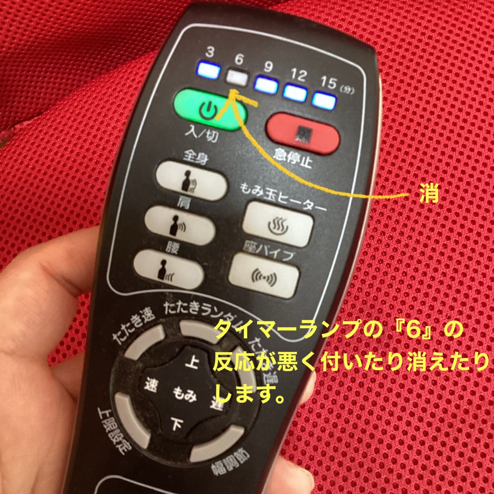 ✅ リモコンのタイマーランプの「6」が点灯したり消えたりします。