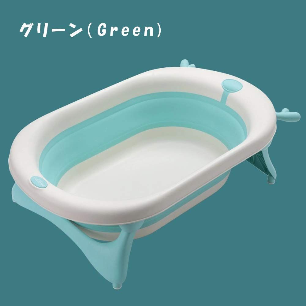 BabaMama 子供 赤ちゃん用 お風呂 ベビーバス スポンジバスネット付き 折り畳み式 グリーン